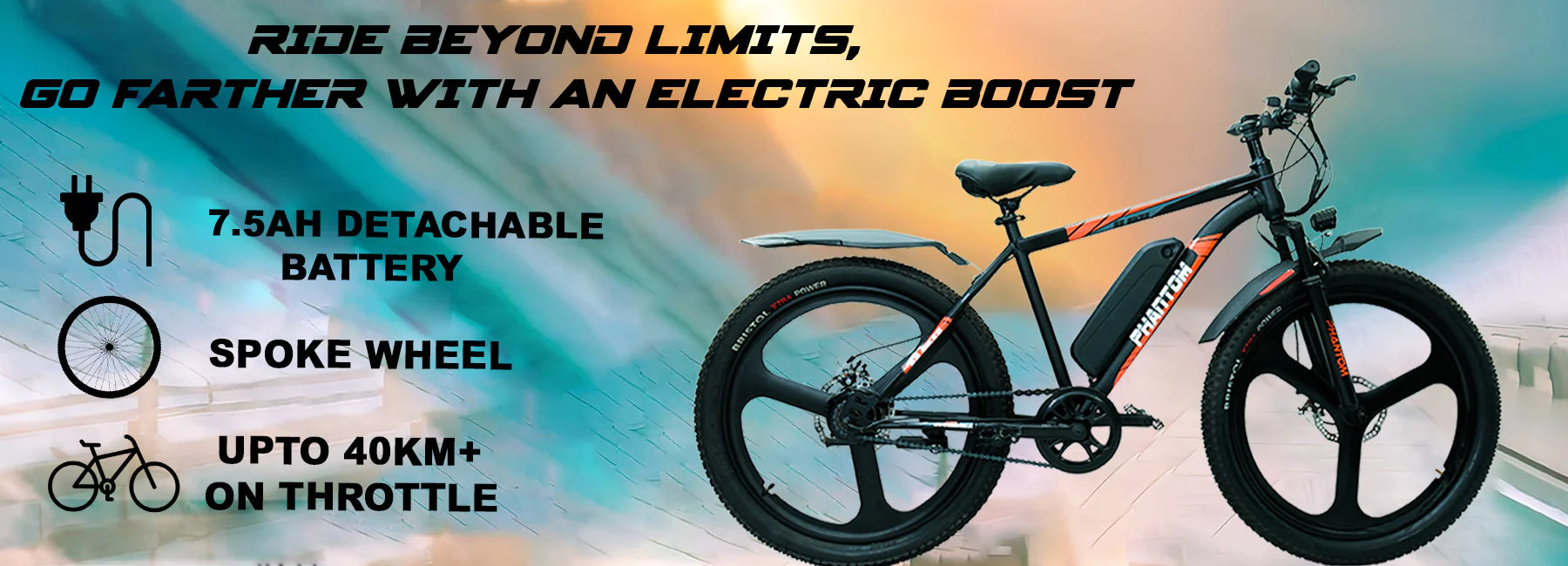 SS Bikes Phantom LR – 250W Motor | Up to 75 km Range | 36V Battery | Dual Disc Brakes